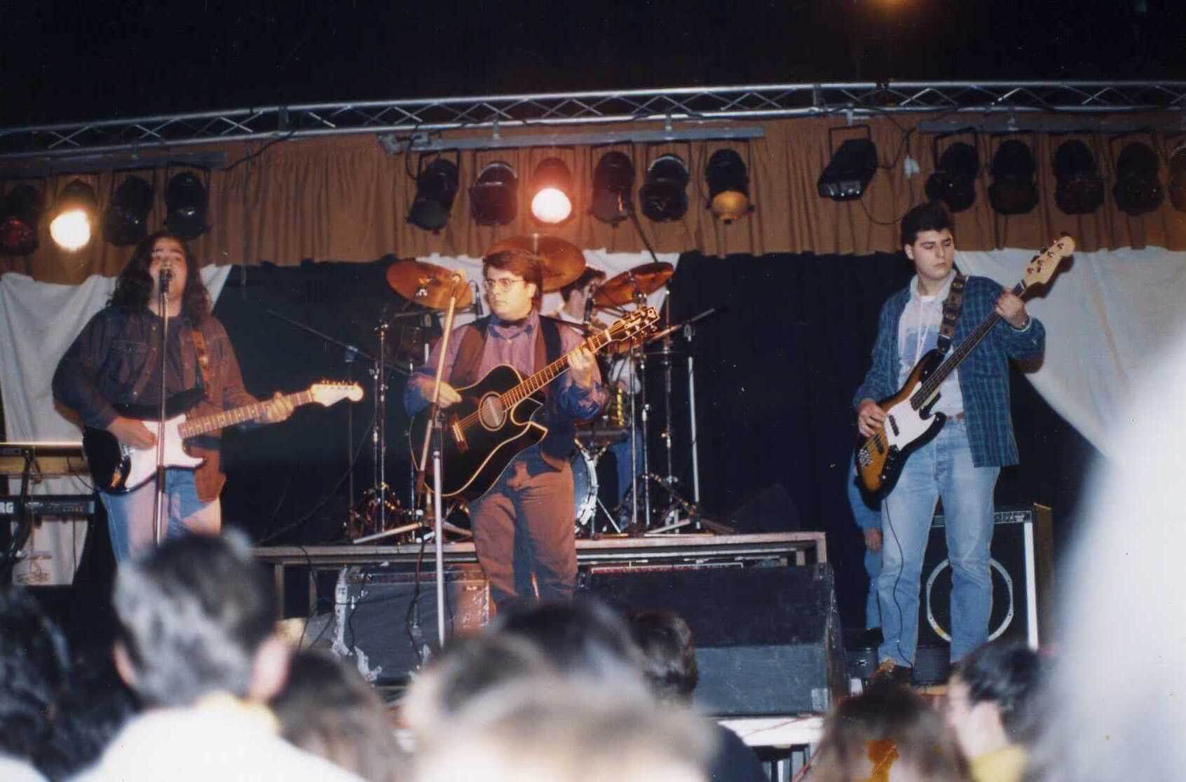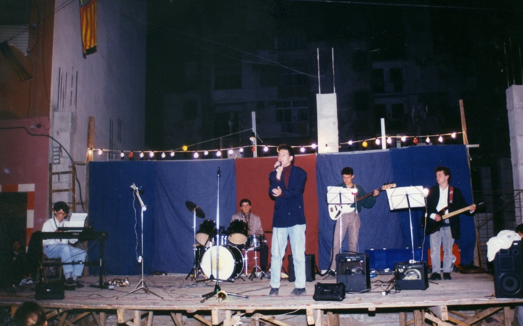 Un año más tarde, en 1991, deja la batería y se pone al micrófono al frente de “Pigmeos Desconocidos”. Su historia con este grupo fue corta ya que en el mismo año cambió de formación y cantó con hora punta, grupo de versiones propias.