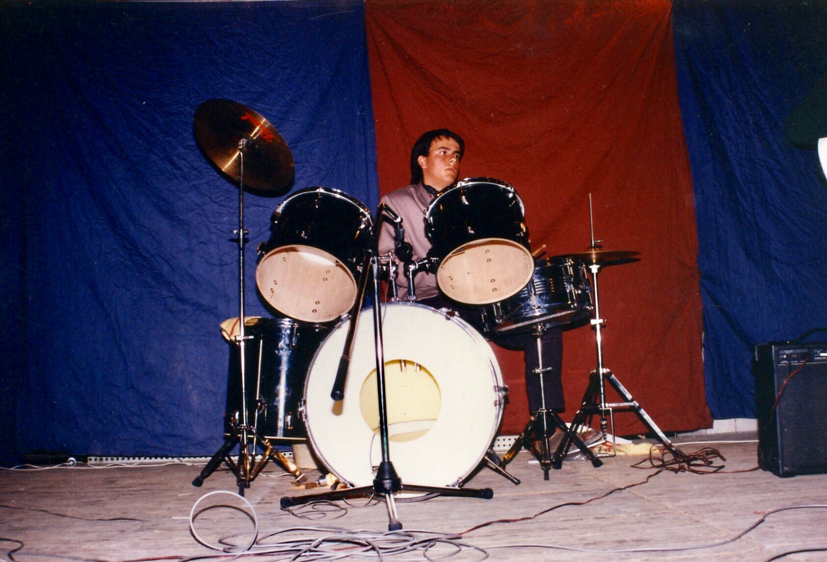 Todo comienza allá por año 1990, cuando aprende a tocar la guitarra. Ese mismo año, su inquietud musical le hace probar con otro instrumento, la batería. Con las baquetas inicia su primera andadura musical. Seria con la orquesta Kiokás. Allí casualmente compartió escenario con otro de los componentes de Replay, con Paquito, nuestro bajista.
